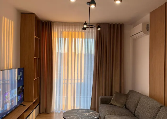 这间95平方米的公寓距离地拉那特蕾莎修女国际机场有20公里。 公寓还提供汽车租赁服务。